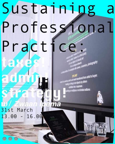 Masterclass: Sustaining a Professional Practice by Zwaan IpemaTaxes! Administration! Strategy! Date: Tuesday, March 31, 13.00 – 16.00Location: NP3 | RE:Search:Gallery, Hofstraat 21, GroningenLanguage: English Participation: Free, registration required, maximum 15 participantsRegister here en it is optional to submit a specific question or case! Programme:12:30 – Doors open13:00 – 16:00 Programme in 3 parts16:00 – Closing with drinks and snacks Catering: Vegan / […]